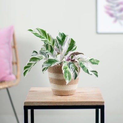 Calathea’s hebben de bijnaam ‘de levende plant’ vanwege hun bewegende uiterlijk. Ze kunnen buiten staan, maar moeten dan wel in de schaduw.