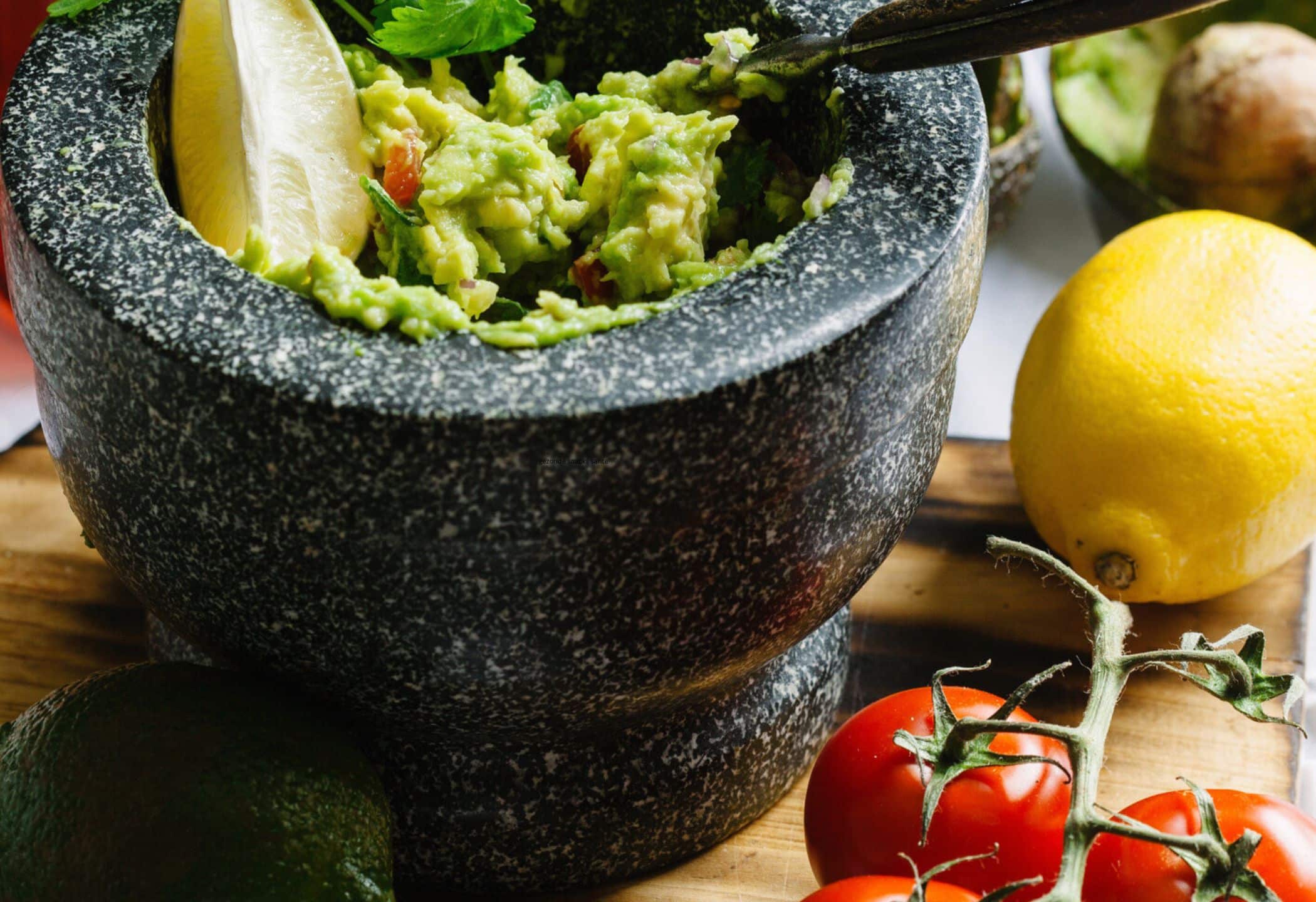 Prak de avocado fijn in een kom. Snijd de zongedroogde tomaten en basilicumblaadjes fijn. Pers de knoflook en doe het samen met een kleine scheut olijfolie bij het mengsel. Prak alles nog een keer door. Dip de guacamole met crackers of stukjes volkoren pitabrood.