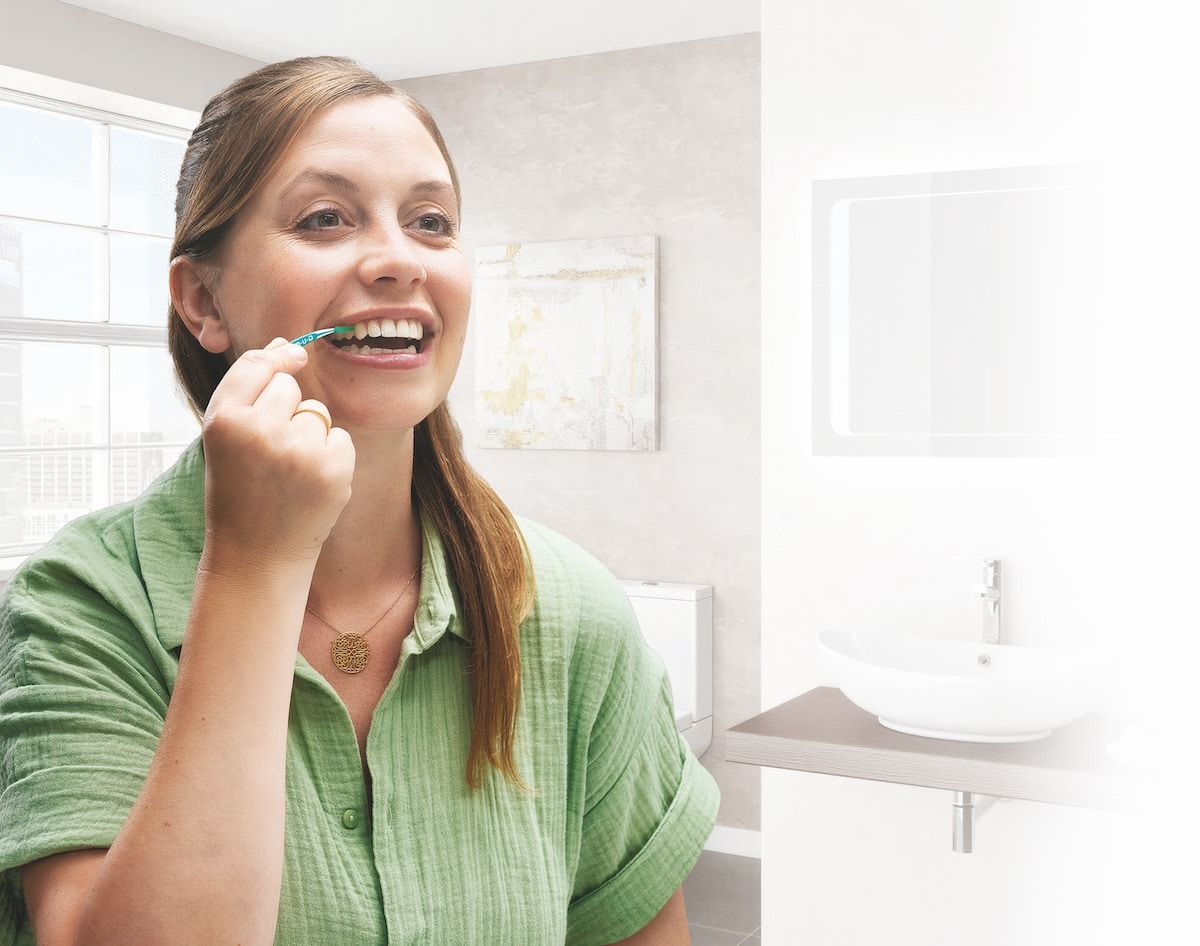 Als je goed tussen de tanden hebt gereinigd, kun je beginnen met poetsen, want nu kan de tandpasta en vooral fluoride tussen alle openingen komen. Dit voorkomt dat er plekken worden geblokkeerd door tandplak of etensresten waar een tandenborstel alleen niet bij kan. Zo reinig je maar liefst 85% van je gebit.