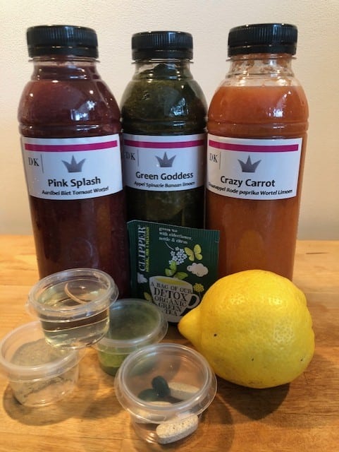 Ik mag een 3-daagse Detox Sapkuur van de Detoxkoning doen. Het belooft dat het een perfecte methode is om je lichaam goed te reinigen en weer efficiënt te laten werken. Door tijdelijk te stoppen met vast voedsel, krijgt het lichaam de tijd om zich volledig te richten op reiniging en herstel van organen, weefsels en cellen. Niet alleen lichamelijk maar ook geestelijk raak je een hoop overtollig afval kwijt.