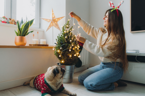 Koop een schattig klein kerstboompje en zet die in de vensterbank of op tafel