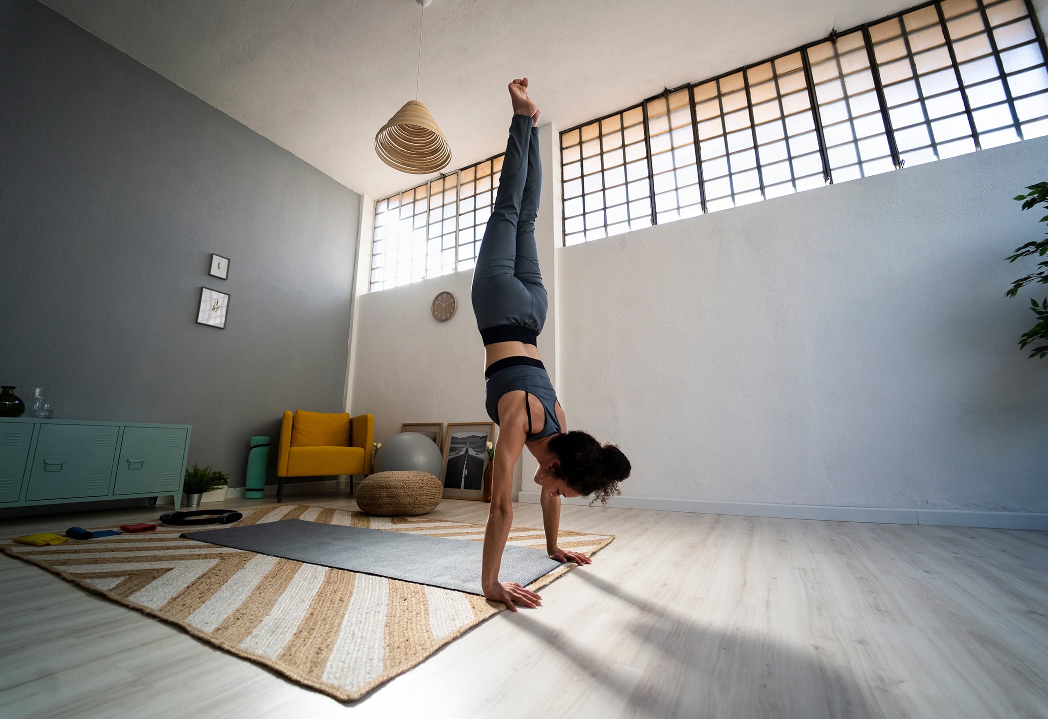 Kom in handstandpositie tegen de muur, handen op schouderbreedte. Kijk naar de grond voor wat meer evenwicht. Begin met 3 sets van 5 à 10 seconden en bouw op naar 3 tot 5 minuten.