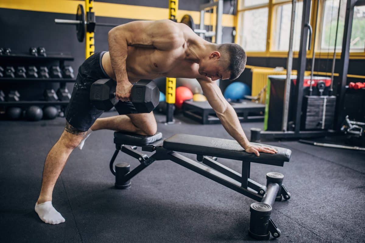 De single arm dumbbell row is een variant van de bent over row waarbij je met één arm tegelijk werkt. Hiermee train je je grote rugspieren – de ‘vleugels’ op je rug – en de achterkant van je schouders.