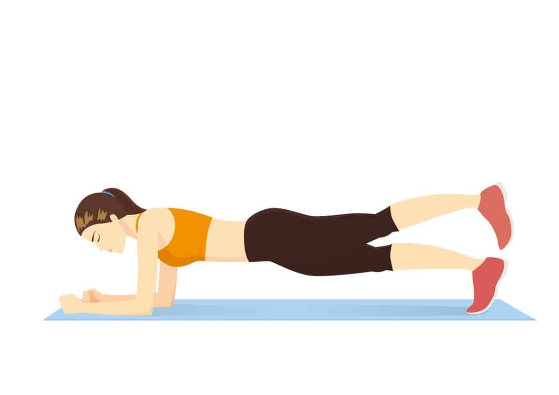 Ga in een plank staan. Strek je rechterbeen langzaam omhoog en houd enkele seconden vast. Laat weer langzaam zakken. Doe hetzelfde met je andere been. Til elk been 12 keer omhoog.